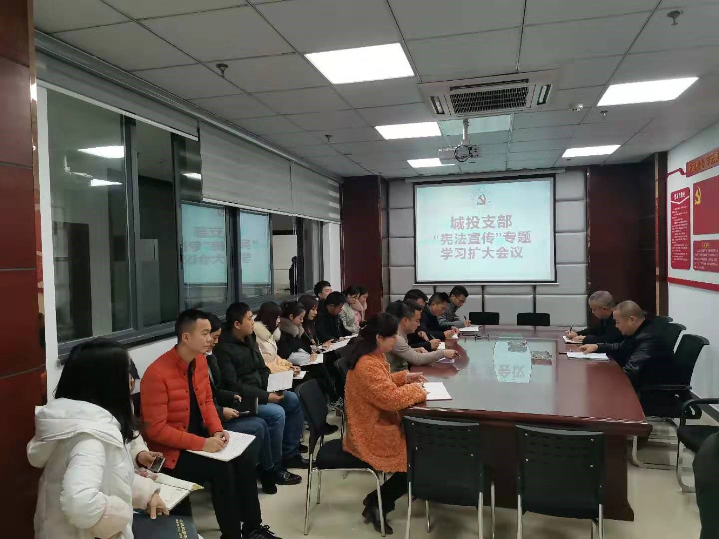 2019年12月5日上午,城投支部組織城投公司、廣源達(dá)公司員工開展了憲法宣傳專題學(xué)習(xí),會上,黨支部副書記譙棣升領(lǐng)學(xué)了習(xí)近平總書記關(guān)于憲法重要論述、新中國憲法發(fā)展歷程、憲法的地位和作用等重要內(nèi)容。