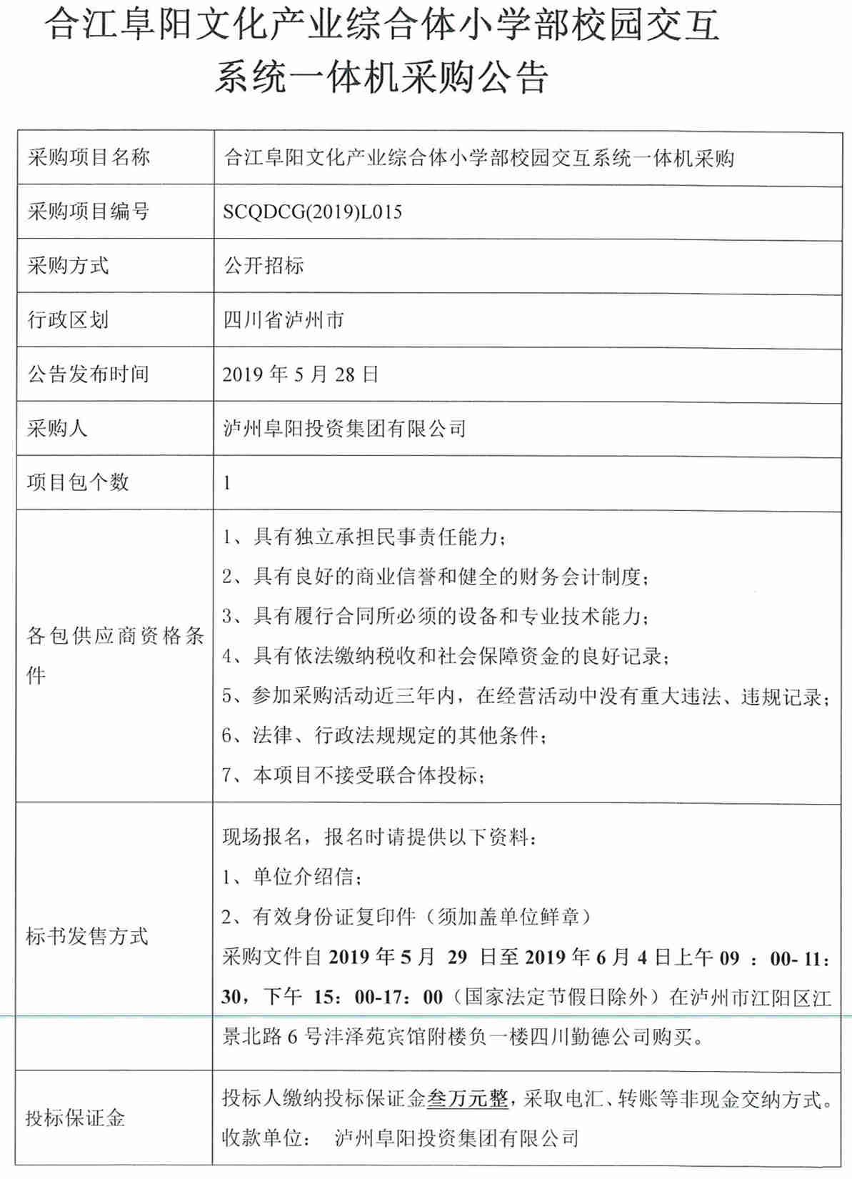 合江阜陽(yáng)文化產(chǎn)業(yè)綜合體小學(xué)部校園交互系統(tǒng)一體機(jī)采購(gòu)公告