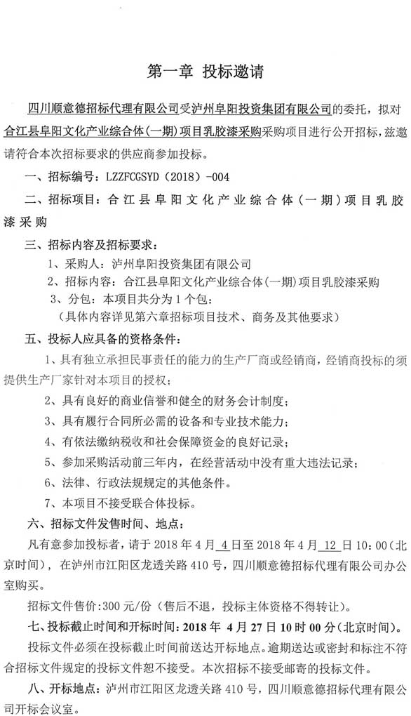 投標邀請:合江縣阜陽文化產(chǎn)業(yè)綜合體(一期)項目乳膠漆采購