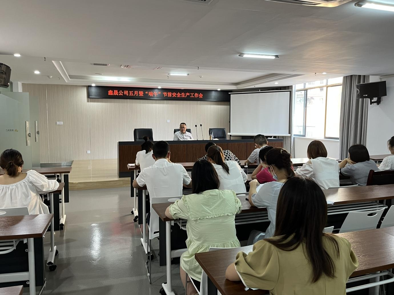 2022 年 6 月 2 日,瀘州鑫晟房地產(chǎn)開(kāi)發(fā)有限公司組織召開(kāi)五 月暨“端午”節(jié)前安全生產(chǎn)工作會(huì),會(huì)議由董事長(zhǎng)任東財(cái)主持, 公司全體員工參加。